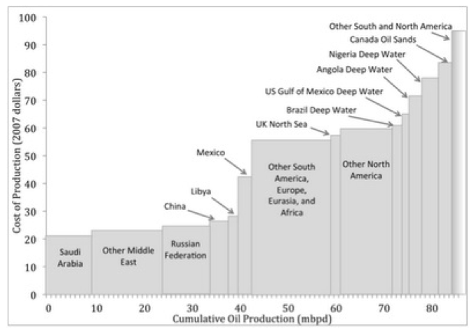 La terza questione riguarda il comportamento strategico dei paesi aderenti all’Opec, il cartello che controlla ormai poco più del 40 per cento del mercato. In questi giorni i vari paesi aderenti all’organizzazione comunicano il prezzo di riferimento rispetto al quale costruiscono il loro bilancio pubblico. Per esempio, l’Arabia Saudita lo ha indicato pari a 45 dollari Usa per barile. Benché il costo di produzione del paese sia pari a circa tre dollari, e dunque il margine per ogni barile prodotto resti ampio, è possibile che alcuni membri del cartello desiderino portare il prezzo ancora più in basso con l’obiettivo di spiazzare le produzioni marginali dei paesi non-Opec (figura 2). Naturalmente sarebbe un’operazione con un costo in termini di entrate che non tutti i paesi dell’Opec sono in condizione di potersi permettere in questo momento. E infatti sono stati vani i tentativi dell’Arabia Saudita di convincere anche Russia e Messico ad aderire a una coalizione tesa a ridurre l’offerta disponibile. Inutile quindi aggiungere che il protrarsi per un lasso di tempo significativo di prezzi più bassi di quelli attuali genererebbe una crisi molto seria in un paese come la Russia, crisi che, nonostante le tensioni in atto, anche gli Stati Uniti vorrebbero evitare.